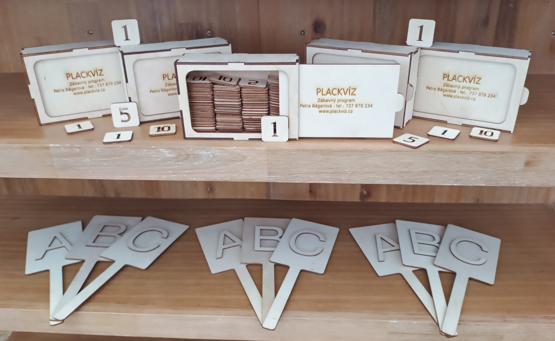 2. Plácačky - každý má vlastní sadu plácaček, které jsou označeny písmeny A, B a C.